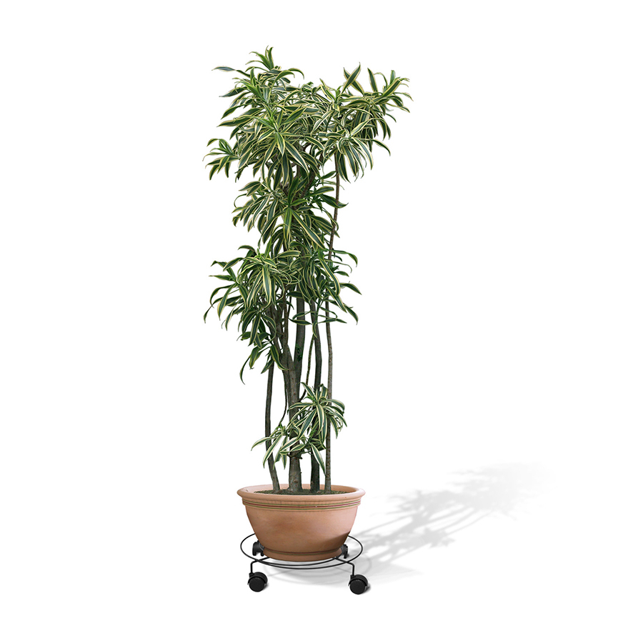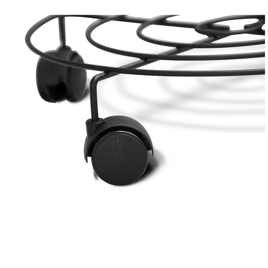 Аккуратная напольная подставка для больших цветочных горшков. Благодаря колесам подставку легко передвигать с растением, например, во время уборки. Защищает пол от влаги и царапин. Подставка выполнена из металла, диаметр/толщина прутка 4 мм. Порошковая окраска изделия, стойкая к механическим повреждениям. Предусмотрено одно место, диаметром 354 мм для цветочного горшка. Максимальная распределенная статическая нагрузка 30 кг. Изделие неразборное.