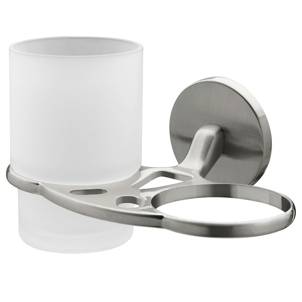 Стакан с подставкой двойной. Материал: стекло-металл. Цвет: матовый- хром.