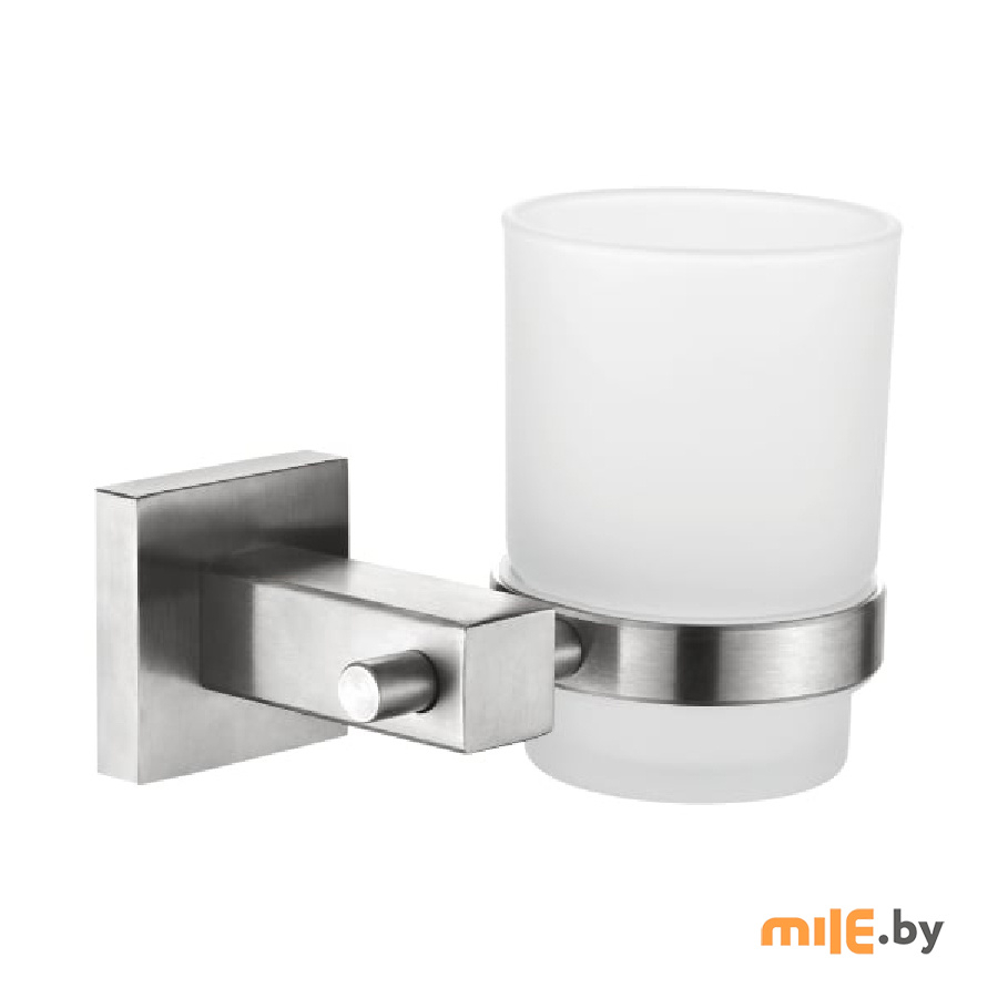 Держатель настенный со стаканом для зубных щёток выполнен из металла, стакан - матовое стекло.