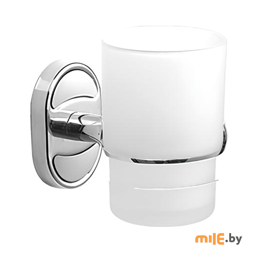 Держатель настенный со стаканом для зубных щёток выполнен из металла, стакан - матовое стекло.