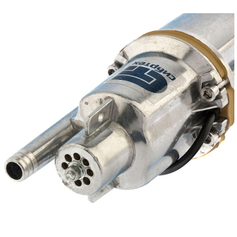 - Необходимые аксессуары в комплекте — трос для погружения и хомут для закрепления шланга прилагаются к насосу.