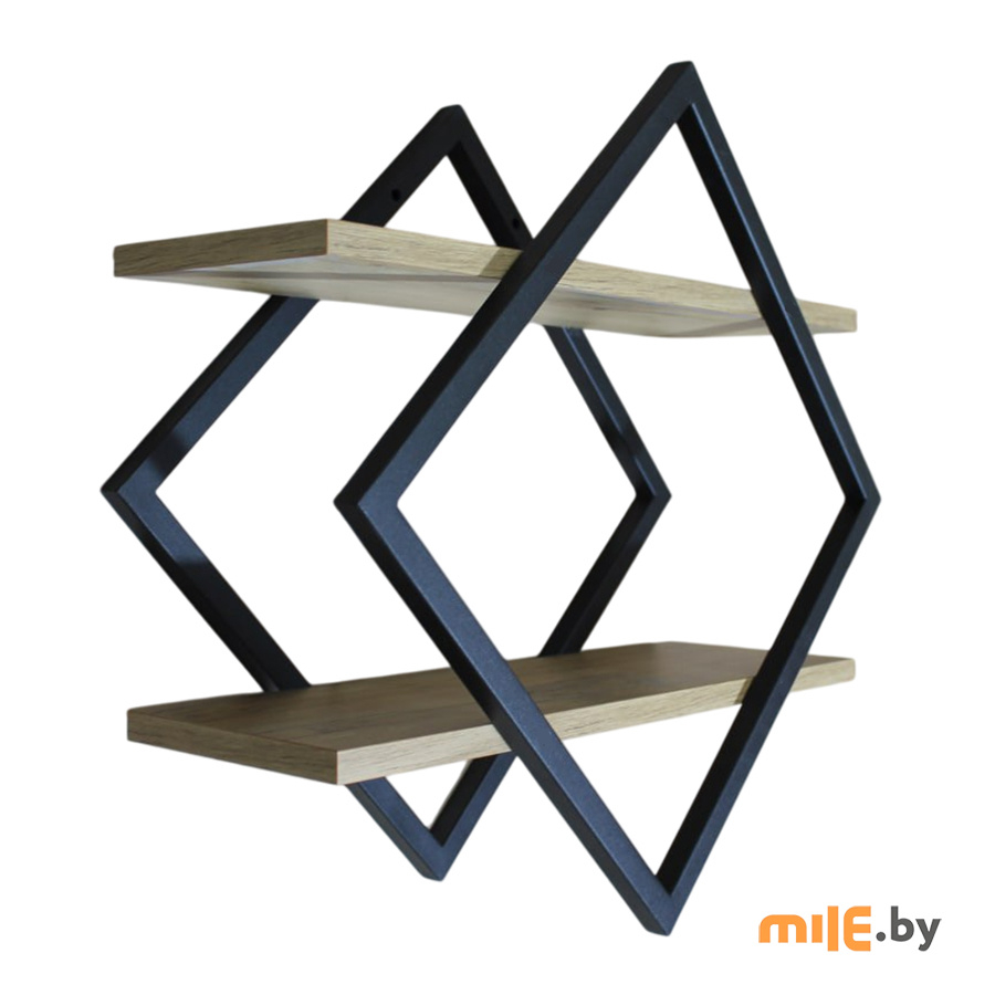 Полка настенная Allerd Ромб (чёрный, дуб нокс)