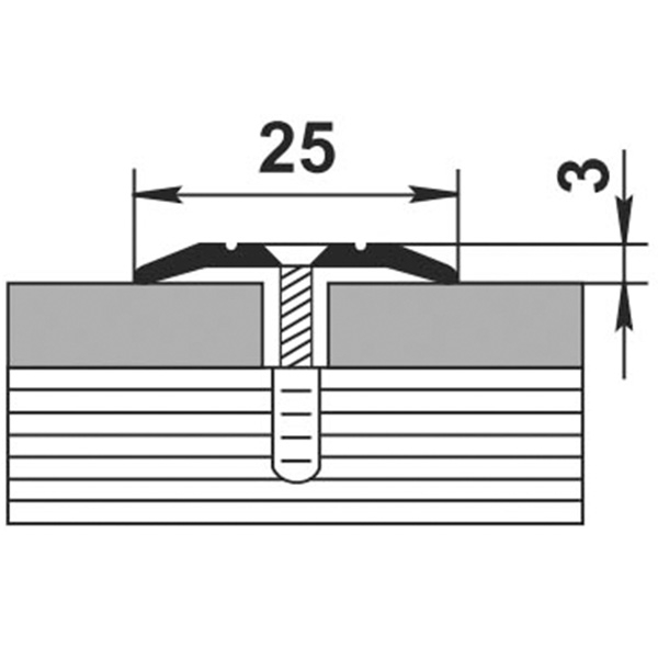 Плоский профиль шириной 25 мм с двумя желобками. Закрывает стык двух одноуровневых поверхностей. Открытый крепеж.