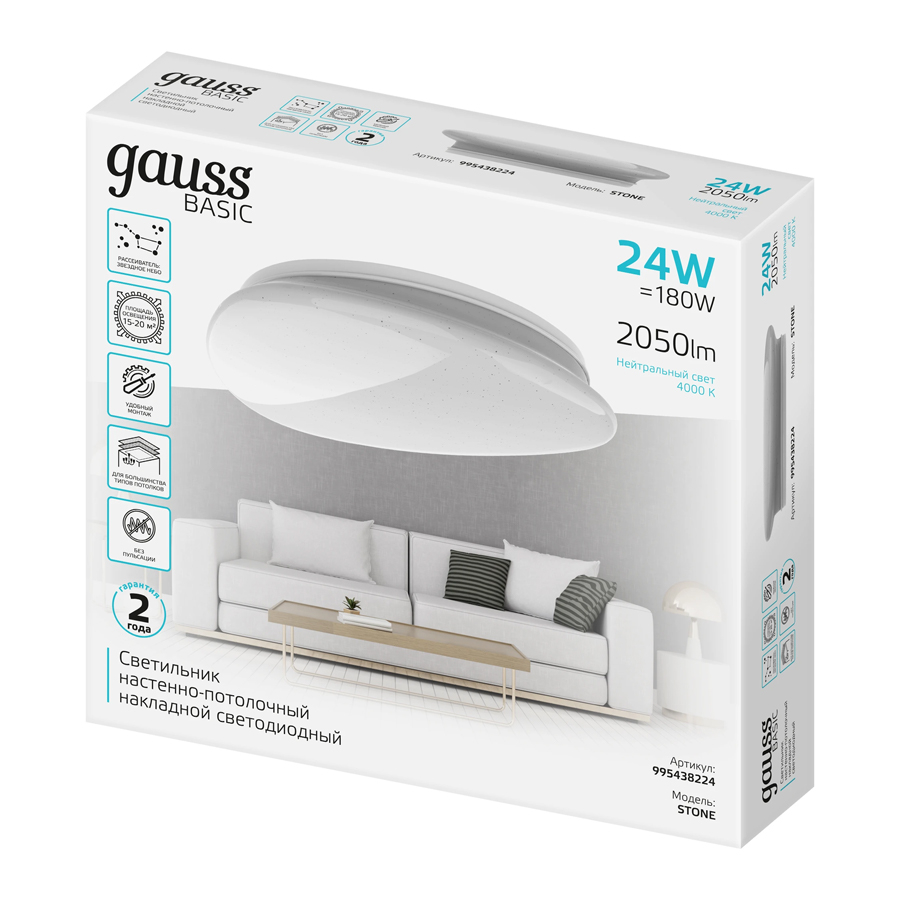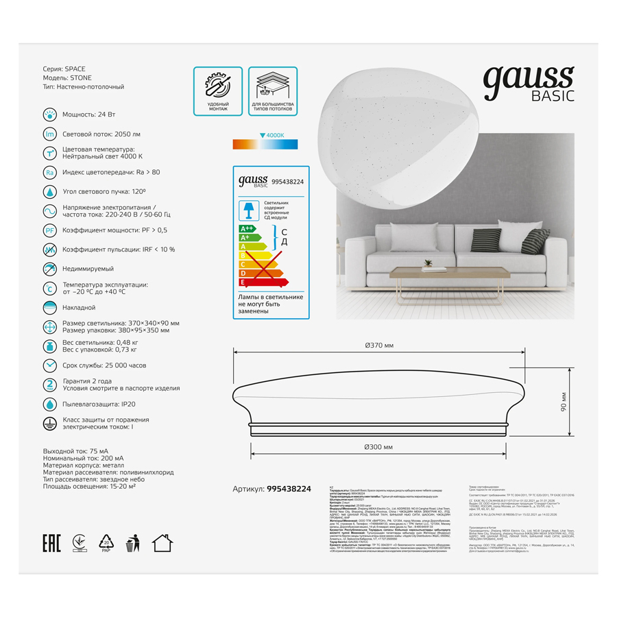 Светильник настенно-потолочный Gauss Basic Space Stone (995438224)