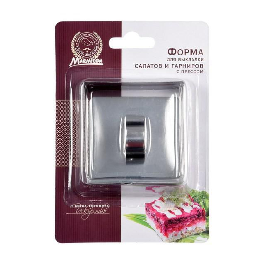 Форма для выкладки салатов и гарниров квадратная Marmiton с прессом, которую также можно использовать для вырезания фигур из готовой выпечки.