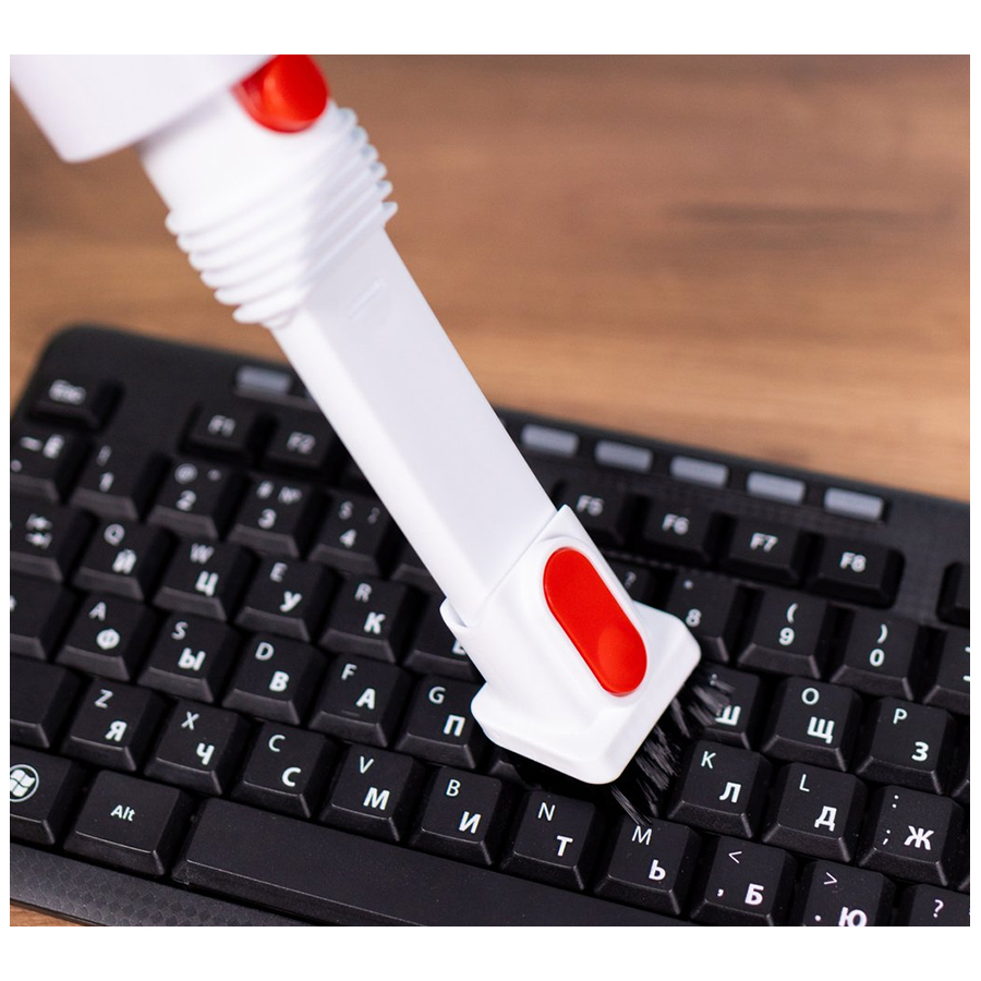Основная щетка подходит для всех видов напольных покрытий и ковров. Щетка маневрнная: поворачивается влево/вправо на 180°, вверх/вниз на 90°. Такая конструкция позволяет удобно очистить загрязнения под мебелью и вокруг ножек. Прорезиненные колеса не царапают пол, не создают лишнего шума.