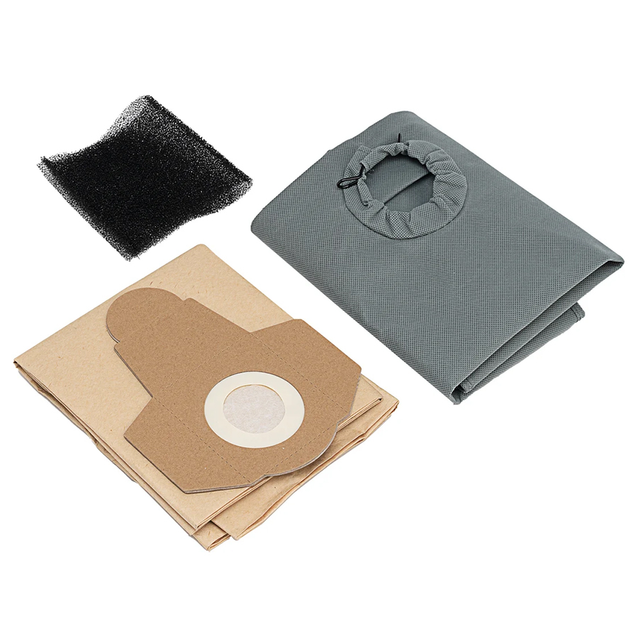 - Широкий комплект поставки — к пылесосу прилагаются фильтры и мешки для мусора, в том числе многоразовый тканевый.