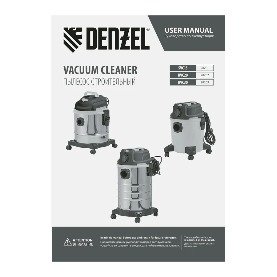 Пылесос строительный Denzel RVC30 (28203)