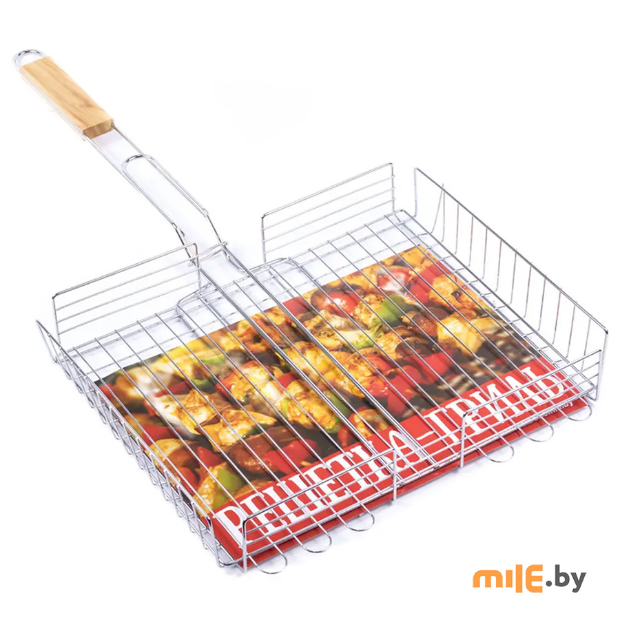 Используется для приготовления мяса/рыбы на углях на открытом воздухе. Не оставлять без присмотра. Не рекомендуется после применения соскабливать острыми предметами остатки пищи, во избежание повреждения покрытия. Перед первым использованием тщательно вымыть водой с моющим средством. Размеры решетки: 35х27,5 см. Длина с ручкой: 67 см.