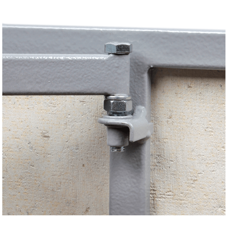 Материал изделия: рама и дверца - стальной профиль, дверца - плита ГВЛ (гипсоволоконный влагостойкий лист), петля - стальная однозвенная.