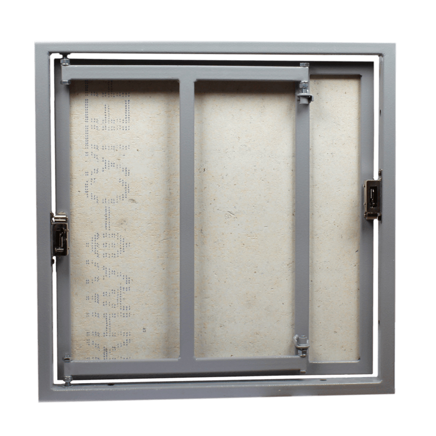 Материал изделия: рама и дверца - стальной профиль, дверца - плита ГВЛ (гипсоволоконный влагостойкий лист), петля - стальная однозвенная.