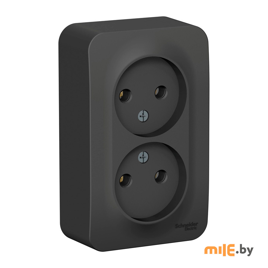 Розетка Schneider Electric BLANCA (антрацит, открытой установки) двухместная, без шторок и заземления, с изолирующей пластиной предназначена для сетей до 250В, на ток до 16А. Двухместная розетка позволяет подключить два устройства в одном месте. Изготовлена из ABS-пластика, проста в установке и удобна в применении.
