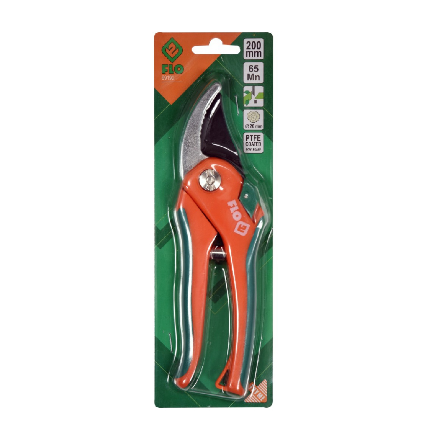 Секатор Flo 99190 имеет длину в 200 мм и способен резать ветки в диаметре до 20 мм. Инструмент выполнен из высококачественной стали со специальным тефлоновым покрытием, которое надежно оберегает поверхность от образования коррозии и различных повреждений. Рукоятка секатора максимально комфортна для работы и оснащена прорезиненными вставками, которые обеспечивают защиту от скольжения во время работы.
