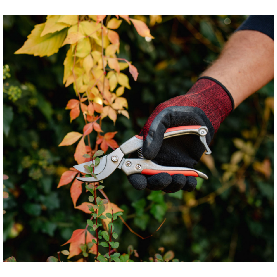 Секатор плоскостной Bradas V-Series KT-V5 подходит для обрезки цветов и веток максимальной толщиной 23 мм. Лезвия выполнены из японской инструментальной стали SK-5, которая характеризуется прочностью и высокой степенью износостойкости режущей кромки. Ручки эргономичной формы из кованого алюминия имеют резиновые вставки в местах соприкосновения с ладонью. Секатор удобно лежит в руке и не выскальзывает. Пружина сжатия цилиндрическая винтовая с амортизатором. Блокиратор – накидной крючок, расположен на нижнем краю ручек.