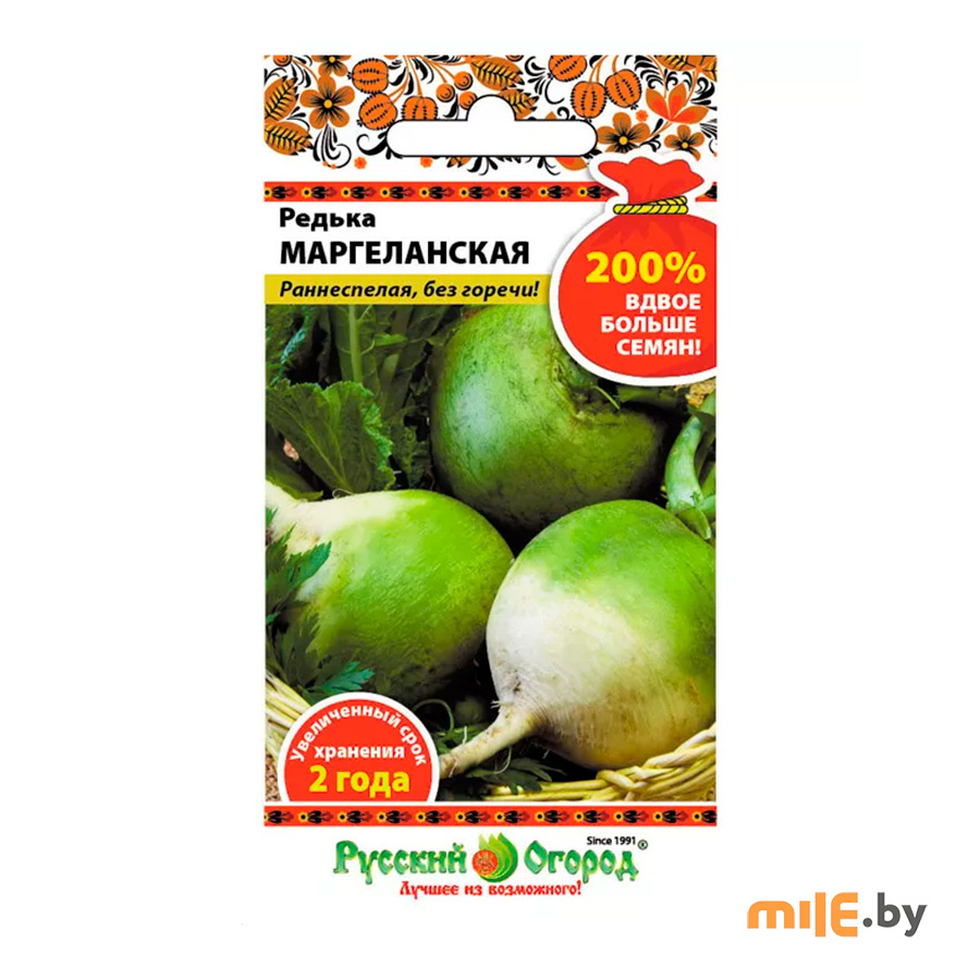 Ранний летний сорт: от всходов до технической спелости 60-90 дней. Корнеплод темно-зеленый с белым кончиком, широкоцилиндрический, длиной 9-16 см, диаметром 7 см, массой 200-400 г. Поверхность гладкая, мякоть светло-зеленая, сочная, без горечи. Лежкость в период хранения хорошая. Для потребления в свежем виде. 3,0-3,5 кг/кв.м.