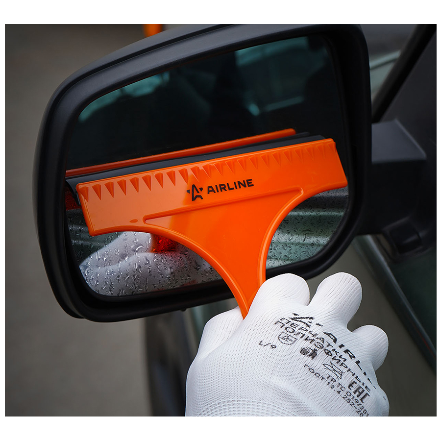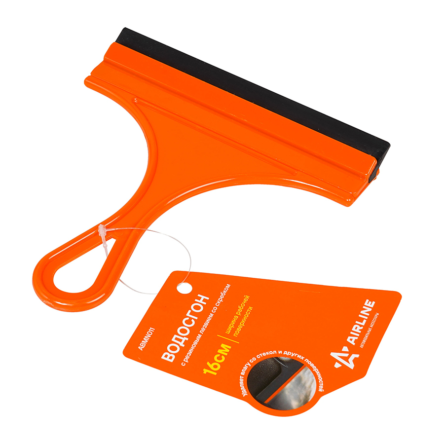 Водосгон Airline изготовлен из термопрочного пластика. Лезвие водосгона изготовлено из резины, которая отличается высокими показателями мягкости, что позволяет очищать стекла без царапин. Ширина рабочей поверхности изделия равна 16 см. Водосгон со скребком для удаления наледи может быть использован в любое время года.