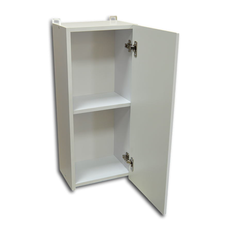 Настенный шкаф изготавливается в двух вариантах: левое и правое открывание фасада. Его можно повесить в любую комнату: ванную или туалет, спальню или детскую, в прихожую или на балкон. Он занимает минимум места и позволяет максимально использовать доступное пространство. Корпус шкафа изготовлен из ЛДСП 16 мм, облицованного кромкой ПВХ, фасад изготовлен из МДФ, покрытого пленкой ПВХ. Сочетание этих материалов делает его устойчивым к влаге.