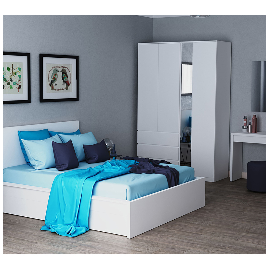 Шкаф Mebelain Варма Стор 144 белый пигмент 222х144х57 см (01217) стильный вместительный шкаф с распашными дверьми и полноразмерным зеркалом. Прекрасно дополнит интерьер и теплую уютную домашнюю атмосферу.
