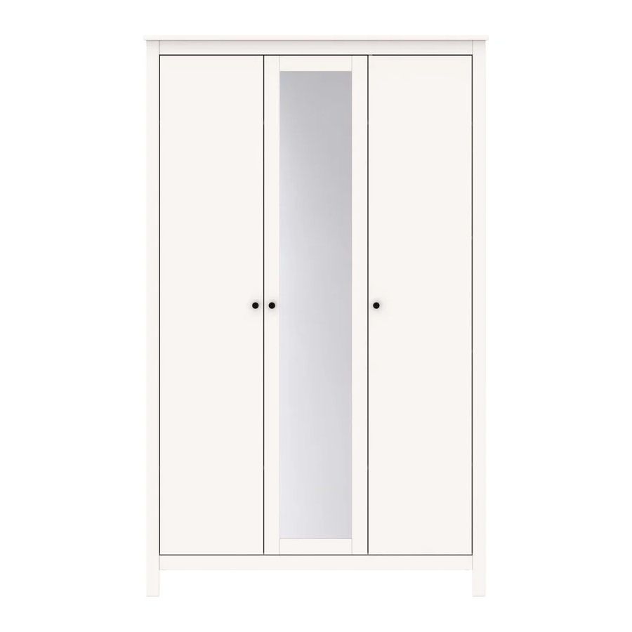 Шкаф для одежды Сага 2.08.01.040.1 — современное и стильное решение для жилой комнаты, столовой или прихожей. Изготовлен из шлифованного ДСП (16 мм и 22 мм) с декоративными накладками и зеркалами, что придает конструкции элегантный и практичный вид. Белый цвет фасада и каркаса, в сочетании с черной фурнитурой, добавляет изделию изысканности и стиля.
