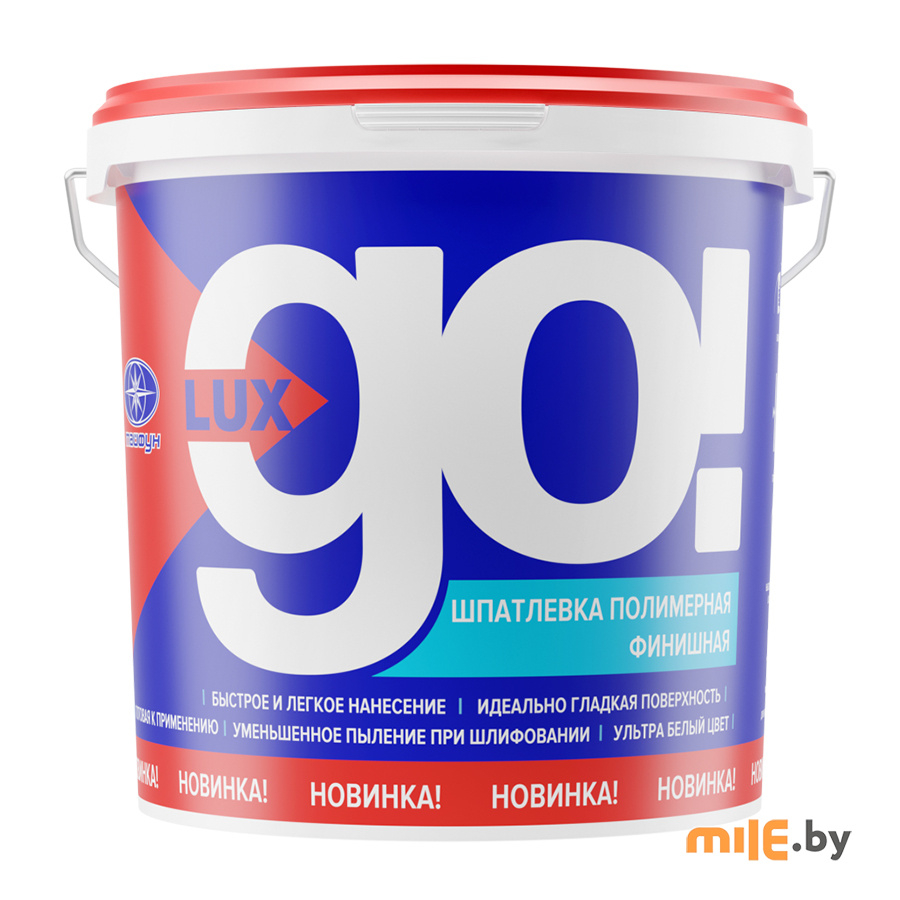 Шпатлевка «LUX GO» изготавливается в виде готовой для применения массы на основе полимерного связующего, минеральных наполнителей и специальных модифицирующих добавок. Шпатлевка «LUX GO»: для внутренних работ; финишная, готовая к применению; идеально гладкая поверхность; для ручного и механизированного нанесения; ультрабелый цвет; толщина слоя 0,1-3,0 мм. Шпатлевка обладает следующими свойствами: быстрое и легкое нанесение – специально подобранная консистенция позволяет наносить и распределять шпатлевочную массу шпателем, валиком либо безвоздушным механизированным способом; длительное открытое время – шпатлевка «LUX GO» комфортно разглаживается в течение длительного времени, не оставляя следов соединения рабочих захваток; идеально гладкая поверхность – тщательно подобранные минеральные наполнители позволяют добиться гладкой поверхности без вздутий и кратеров уже после первого разглаживания широким шпателем; толщина слоя до 3,0 мм – даёт возможность за один проход выровнять и загладить плоскость основания с имеющимися изъянами и дефектами. Шпатлевка применяется для тонкого высококачественного выравнивания поверхностей потолков, стен, колонн и строительных перегородок из различных минеральных материалов внутри помещений с нормальным температурно-влажностным режимом эксплуатации под окончательное покрытие лакокрасочными, декоративными материалами, а также обоями. Может применяться для полноповерхностного шпатлевания гипсокартонных (ГКЛ) и гипсоволокнистых (ГВЛ) листов. Рекомендуется как для ручного, так и для механизированного нанесения.