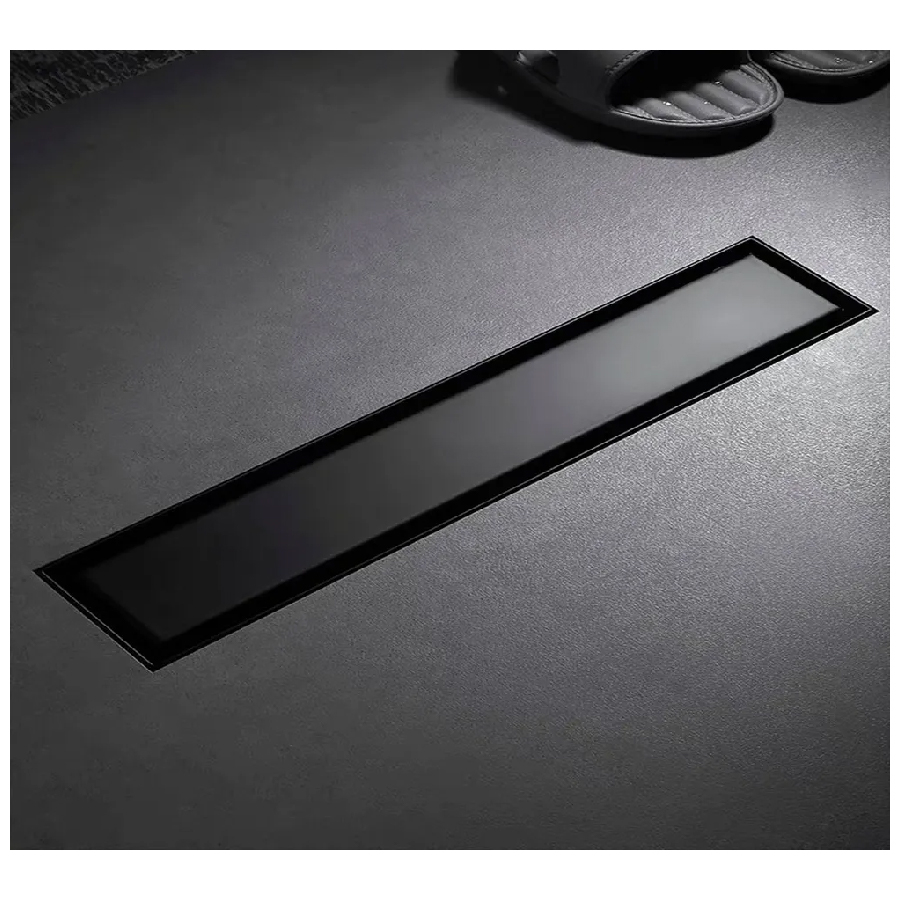 Трап (лоток) под плитку черный матовый с поворотным фланцем (сифоном) 360С свободного вращения 70/600 мм с сухим и гидрозатвором. В данной модели принцип работы сухого затвора представляет собой обратный клапан легкие лепестки диаметром больше сливного отверстия, в случае высыхания воды, просто опускается и закрывает трубу. В рабочем положении вода поднимает и удерживает лепестки на одном уровне и система работает, как один из вариантов гидрозатвора. Если трап не используется, то вода из затвора испаряется, а лепестки закрывают сливное отверстие раньше, чем вода полностью испарится. Сифоны такой конструкции примечательны двухуровневой защитой – водяная пробка сдерживает проникновение запахов, а обратный клапан выступает дополнительной защитной преградой. Сифон свободно вращается на 360 градусов, что максимально удобно при монтаже изделия и исключает лишние изгибы канализационной трубы. Широкий диапазон регулировки позволяет устанавливать трап в новых ванных комнатах любого типа.