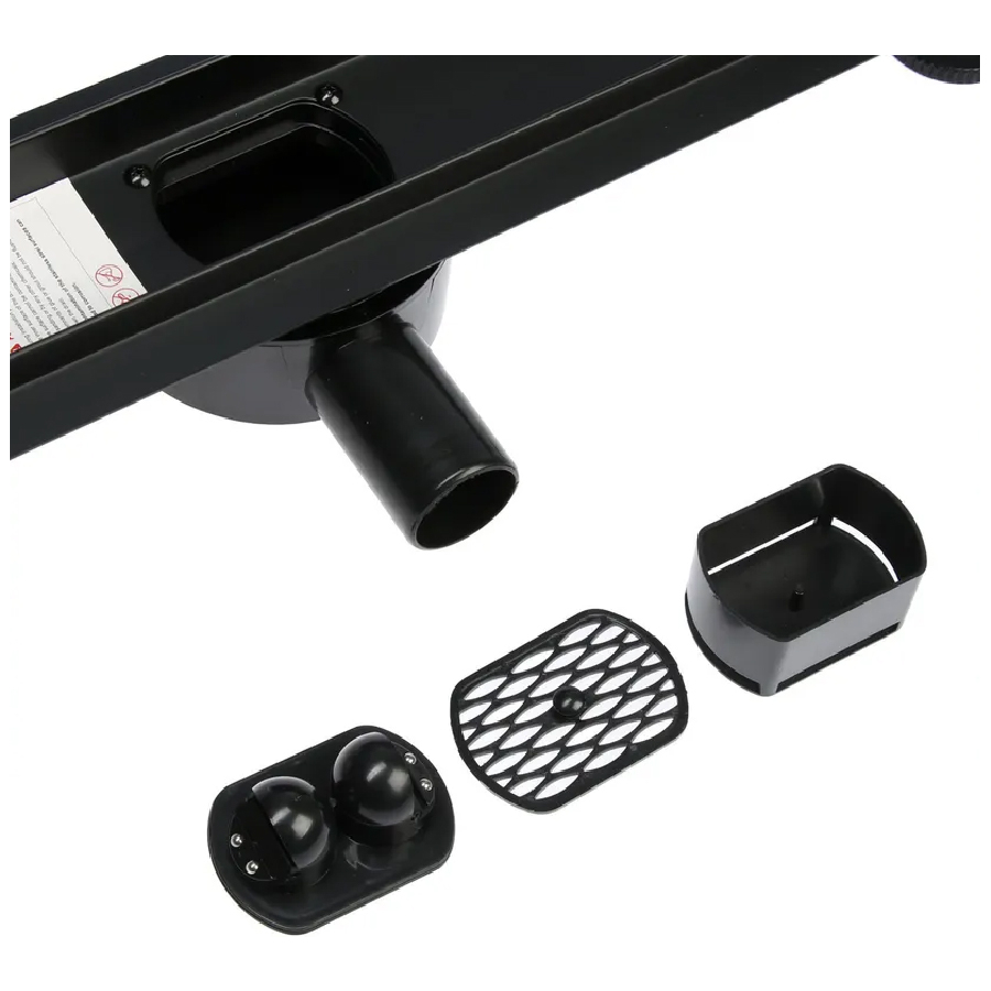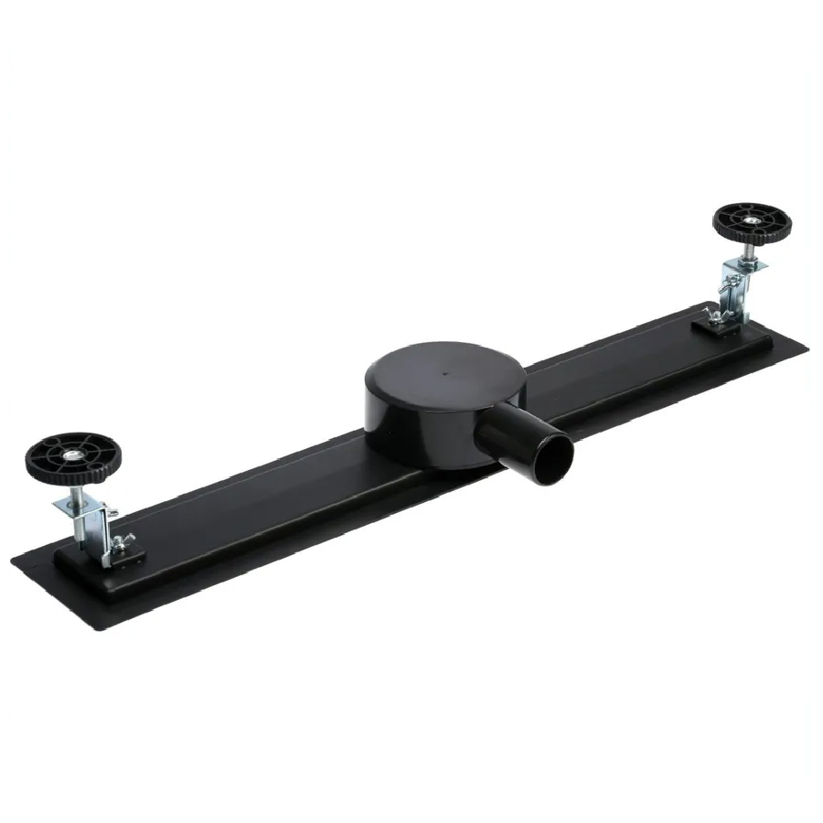 Комплектация: трап черный матовый, ключ для съема решетки и чистки сифона - 1 шт., дюбель ø8 - 4 шт., переход 40/50 - 1 шт., защитная гидро-изоляционная подкладка для воротника желоба и впускного отверстия сифона - 1шт., монтажный вкладыш для защиты лотка желоба - 1шт., монтажный набор для крепления регулируемых ножек - 2 шт.