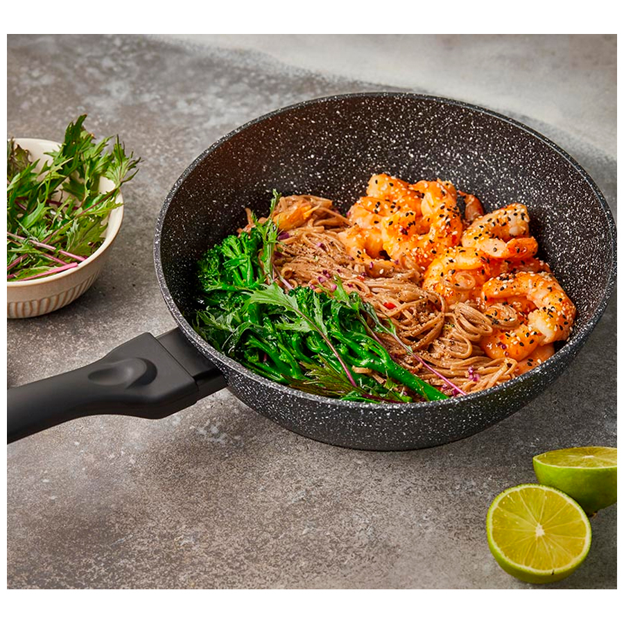 Приготовление еды может быть не только рутинным повседневным занятием, но и приятным, полезным хобби, а для этого кухня должна быть не только современной и красивой, но практичной и удобной в ежедневном использовании. Наши сковороды оснащены эргономичными удобными ручками с приятным, мягким на ощупь покрытием. Наши изделия прекрасно подходят для повседневной эксплуатации и вызывают только положительные эмоции - с ними ваша кухня будет выглядеть так же привлекательно, как и приготовленные вами великолепные блюда. Благодаря стильным металлическим вставкам в ручке, сковорода практично и органично сочетается с интерьером современной кухни.