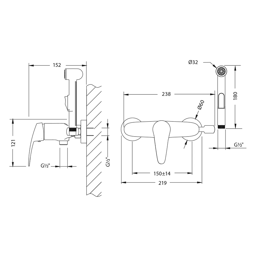Состав поставки смеситель, гигиеническая лейка, душевой шланг, крепления, иснтрукция
