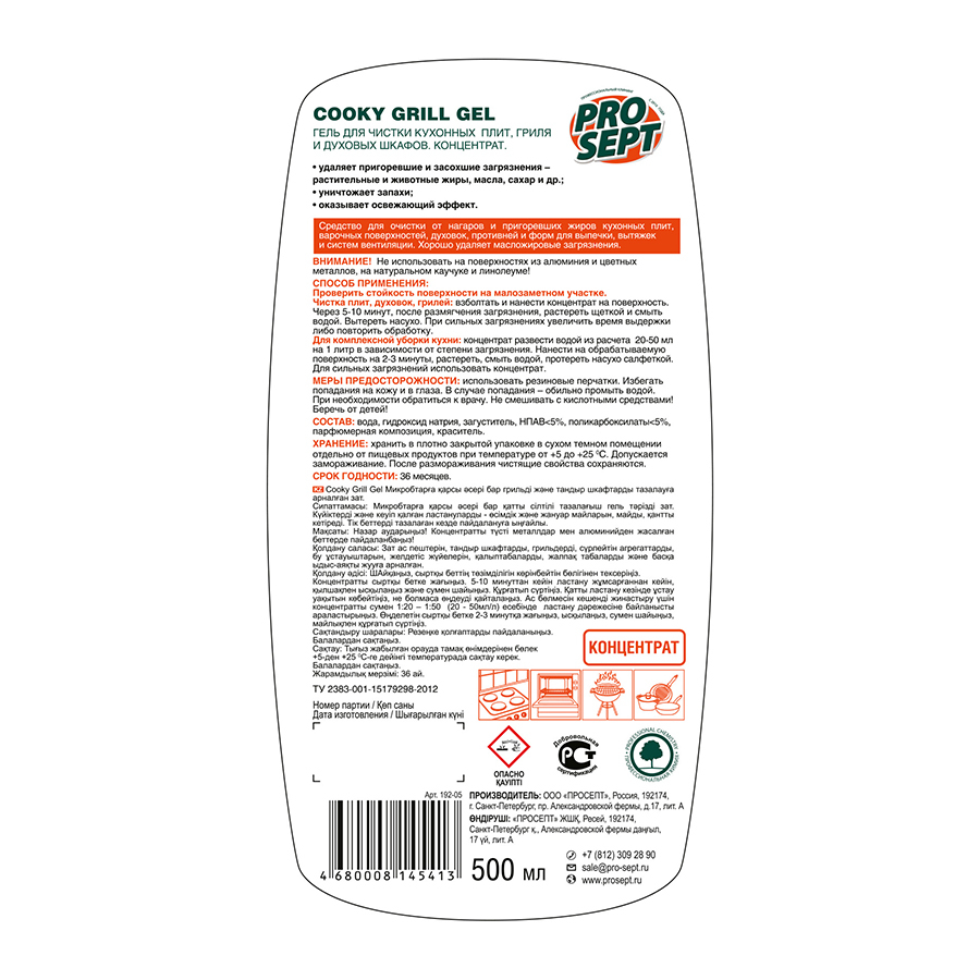 Средство для чистки гриля и духовых шкафов Prosept Cooky Grill Gel Концентрат гелеобразный 0,5 л