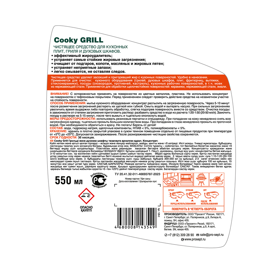 Средство для чистки гриля и духовых шкафов Prosept Cooky Grill Концентрат 0,55 л