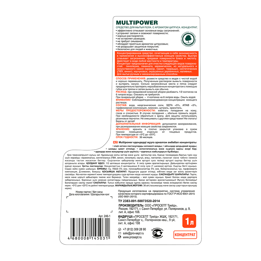 Концентрат для мытья полов с ароматом цитруса Prosept Multipower 1 л