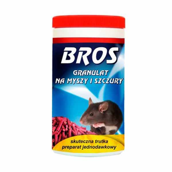 Отрава в виде гранул Брос в банке – очень удобный и практичный препарат от всех видов грызунов вредителей. Избавьтесь от крыс и мышей навсегда с помощью гранулированной приманки Брос. В составе приманки пищевые добавки и ароматизаторы, которые привлекают максимальное количество грызунов. Процесс дератизации проходит с высоким уровнем эффективности при наименьших затратах. Гранулы Брос Bros нужно раскладывать на специальные подложки в местах обитания или появления грызунов. Используйте резиновые перчатки или пинцет, чтобы приманка оставалась без запаха человека и не отпугивала грызунов. Выгодная цена и отличный результат дают именно гранулы Брос – приманка от крыс и мышей. В течении 4-5 дней прослеживаются результаты выведения грызунов. Умерших грызунов и остатки отравы Брос необходимо утилизировать в наибольшей отдаленности от колодцев и других видов водоемов.