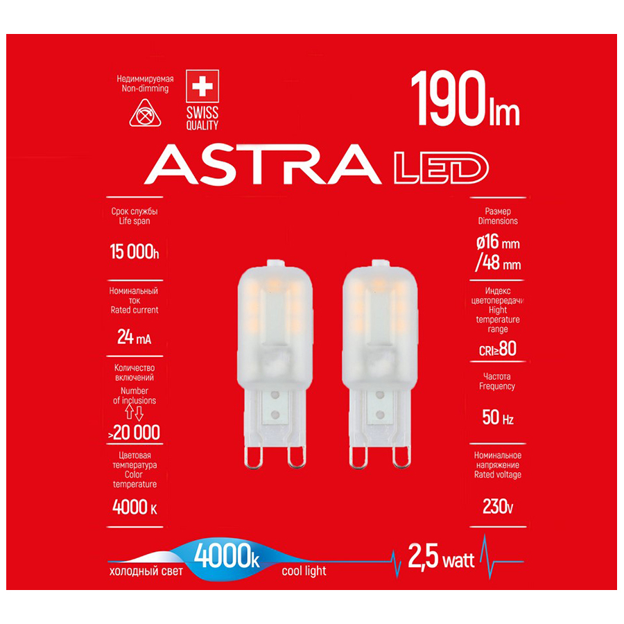 Лампа светодиодная Astra LED G9 2,5W 4000K (2шт.)
