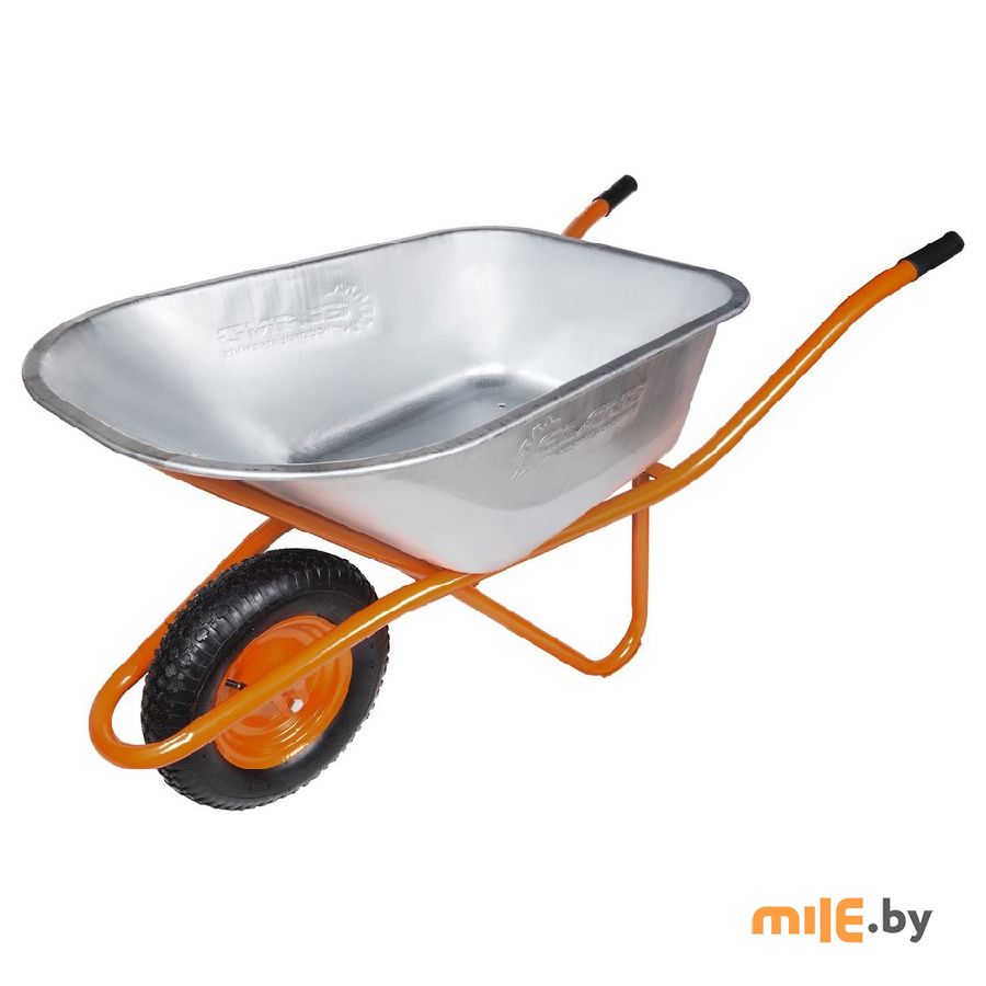 Тачка строительная одноколесная Eland Gigant Profi 320-1. Прочный оцинкованный кузов с усиленной рамой 32 мм. Большое пневматическое колесо с пылезащищенными подшипниками.