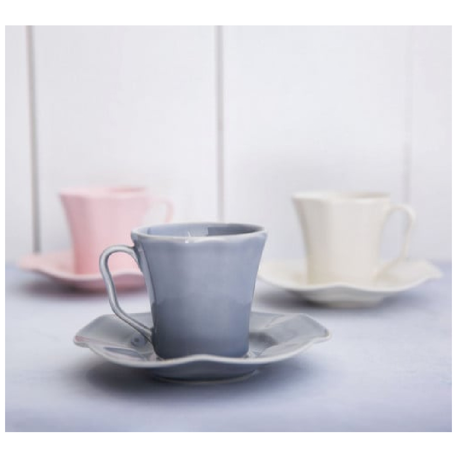 Посуда из серии Diana Rustic имеет волнистые края и красивые, пастельные тона: розовый, серый и кремовый, которые можно сочетать между собой.