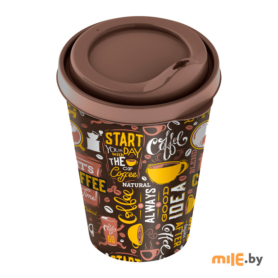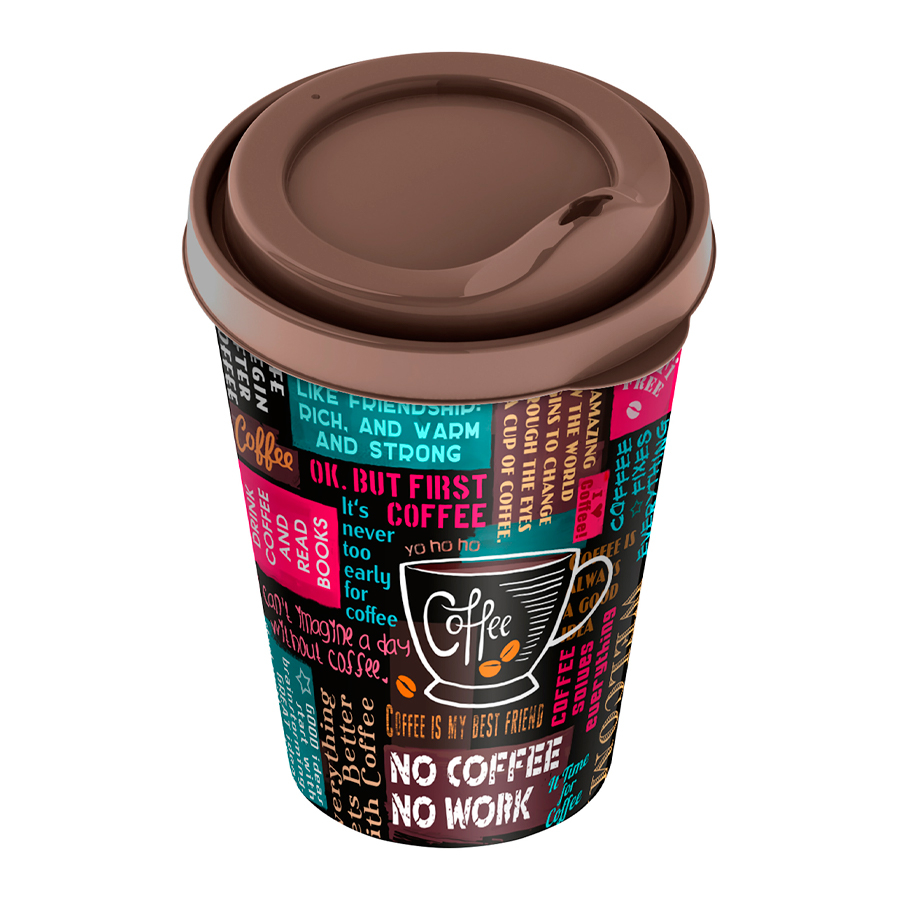 Стаканы 420 мл с крышкой имеют комфортный диаметр корпуса, удобно ложатся в руку и подходят к подстаканникам в машине. Крышка с носиком имеет язычок для удобного открывания. Использование многоразовых стаканов и кружек для напитков вместо одноразовых не только полезно для экологии, но и делает более приятным приём напитка. IML-декор наносится на весь корпус и вплавляется в изделие на этапе литья, поэтому он не стирается и долго радует глаз. Качественный полипропилен не содержит бисфенола А и подходит для СВЧ.