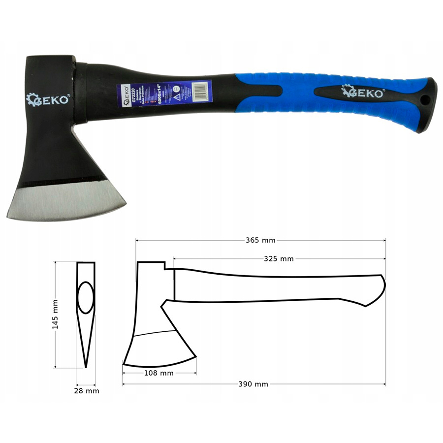 Высококачественный топор с головкой из высокоуглеродистой стали. Отлично заточен, имеет защиту лезвия для транспортировки. Продукт польской компании GEKO.