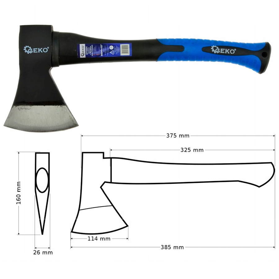 Высококачественный топор с головкой из высокоуглеродистой стали. Отлично заточен, имеет защиту лезвия для транспортировки. Продукт польской компании GEKO.