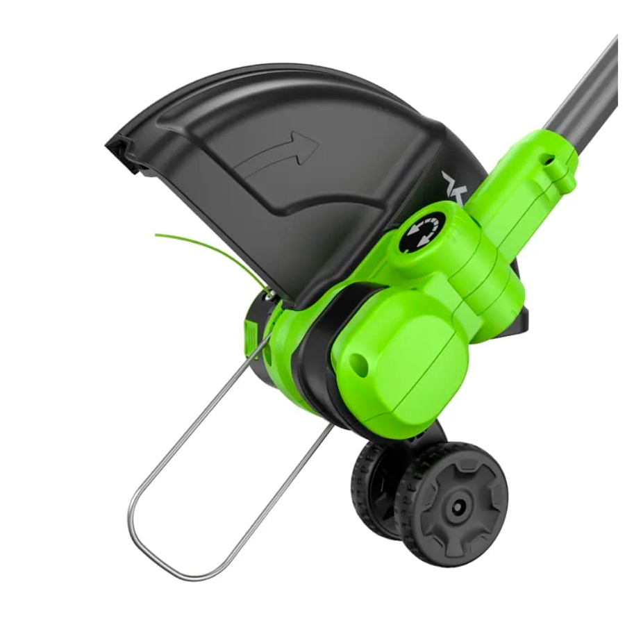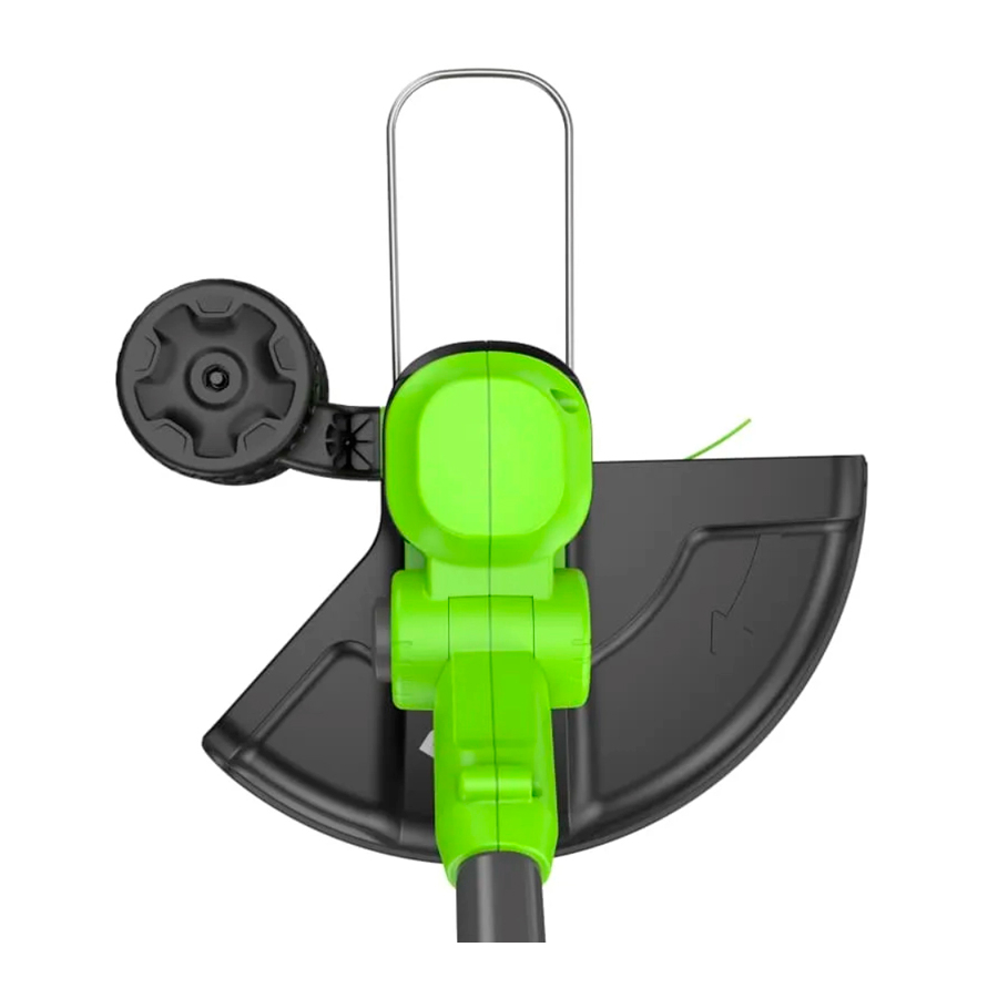 Аккумуляторный триммер Greenworks G24LT301K2— триммер из серии 24В для скашивания травы на небольших садовых участках. Ширина кошения составляет 30 см леской и 25 см пластиковыми ножами. Имеет функцию кромкореза.