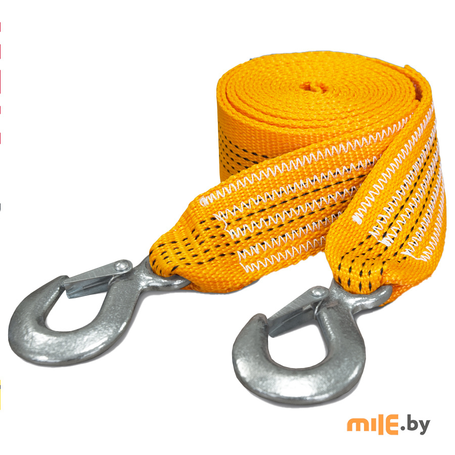 Предназначен для надежного буксирования автомобилей весом до 12 тонн. Усиленный морозоустойчивый трос из высокопрочной полипропиленовой нити. Прочный литой крюк с надежным замком.