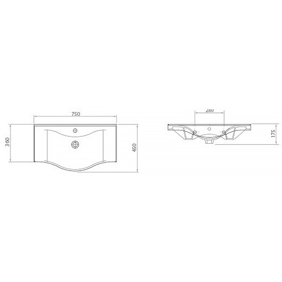 Тумба Бел-Гаммари 75 (Р27оФ8-У) с умывальником Базик 7075