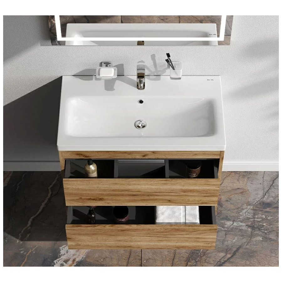 Тумба комплектуется уникальной эргономичной раковиной из коллекции Gem. Это самая компактная и функциональная раковина на рынке: проекция всего 42 см при максимальной глубине чаши. Раковина изготовлена из стекловидного фарфора, самого гигиеничного и влагостойкого материала. Покрытие корпуса - глазурь. Размер раковины (Ш/Г/В): 760x420x170 мм. Цвет раковины - белый.