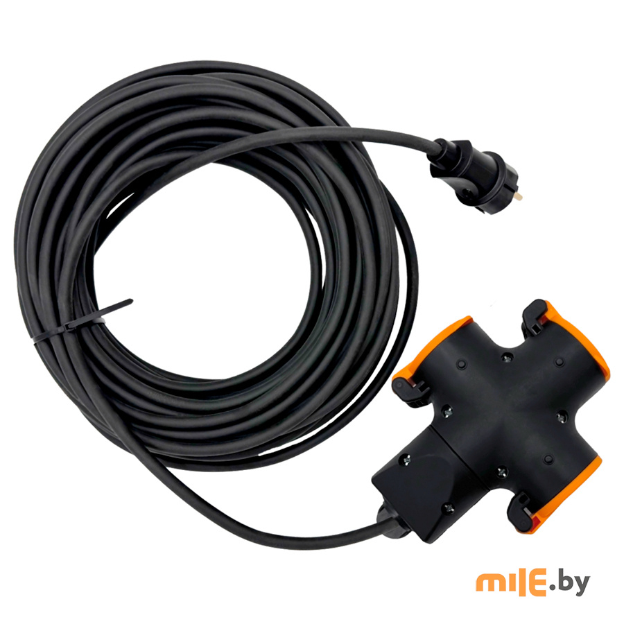 Удлинитель предназначен для использования в сложных эксплуатационных условиях и широко применяется в производстве, строительстве и машиностроении. Корпус выполнен из пластика, устойчив к механическому и химическому воздействию. Крышки надёжно закреплены, обеспечивают защиту от попадания внутрь разъема пыли и влаги. Высокая ударная прочность, в том числе при низких температурах. Подходит для работы в экстремальных условиях. Номинальный ток 16А, IP 44, 250В, до 3700 Вт, сечение кабеля КГ3*2,5, 20 м, количество розеток - 3 шт.