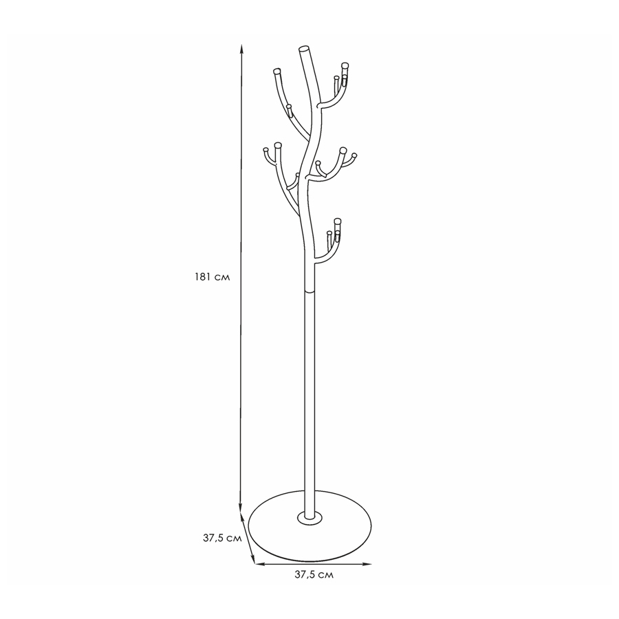 Гардеробная вешалка "Дерево" органично сочетает в себе две функции - эстетическую и практическую. Вешалка напоминает изящное деревце, ветки которого надежно закреплены на стволе и выполняют функцию крючков для одежды и аксессуаров. Благодаря широкому круглому основанию модель достаточно устойчива, но при размещении на ней одежды и предметов необходимо соблюдать симметрию.