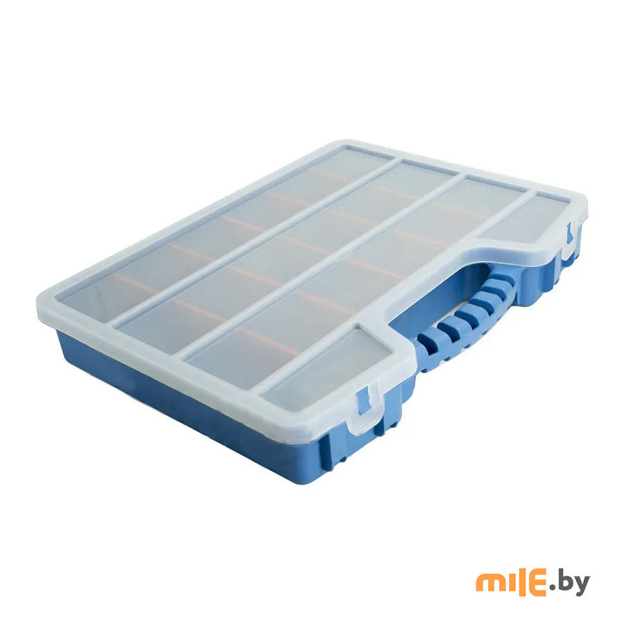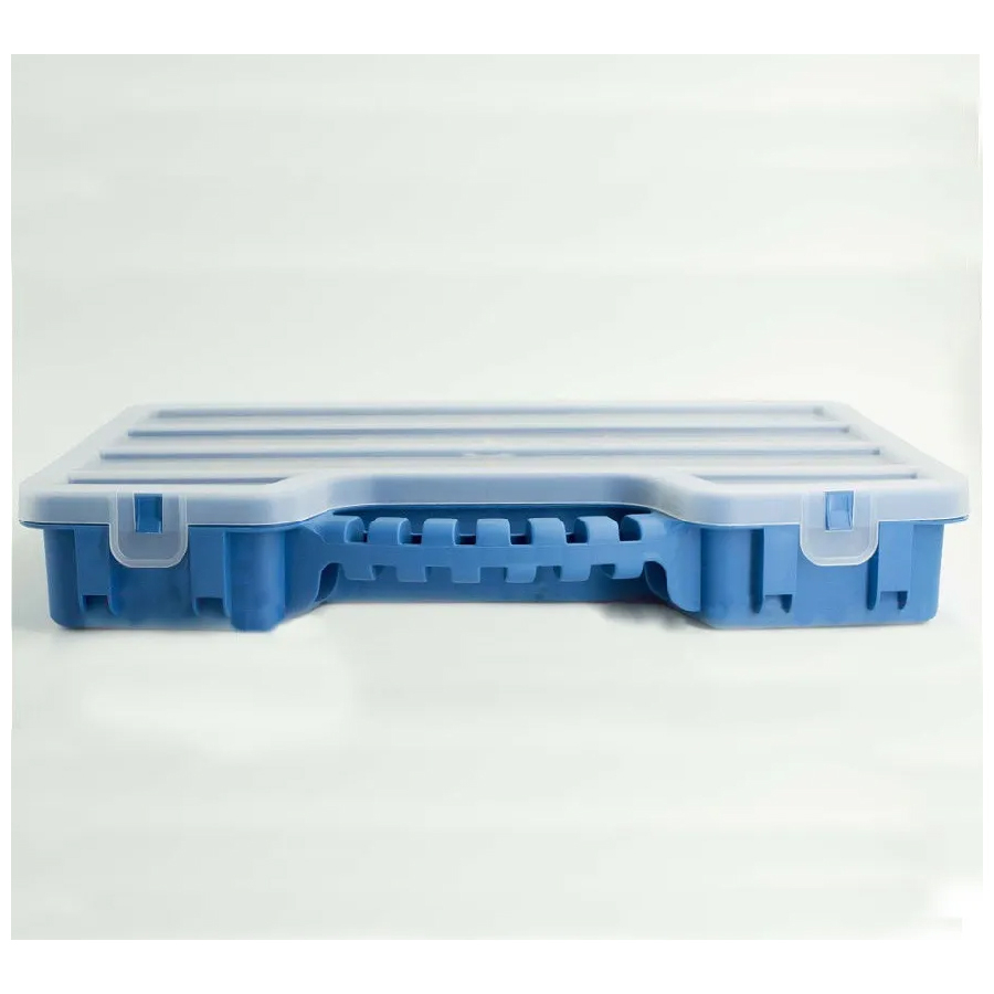 Органайзер для мелкого крепежа, инструмента и оснастки. Подходит для хранения рыболовных снастей. Изготовлен из прочного пластика, отличается долговечностью, высокой степенью износа, устойчив к механическим повреждениям, морозу и влаге. Органайзер прочно закрывается и предотвращает выпадение предметов.