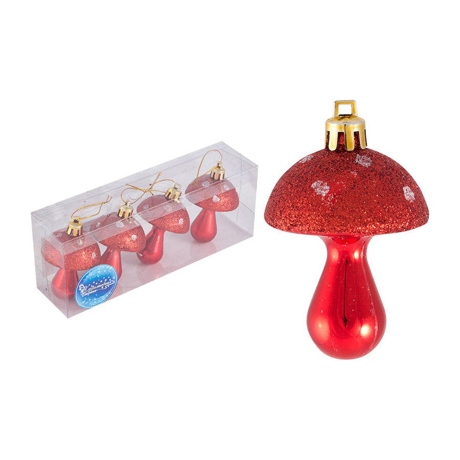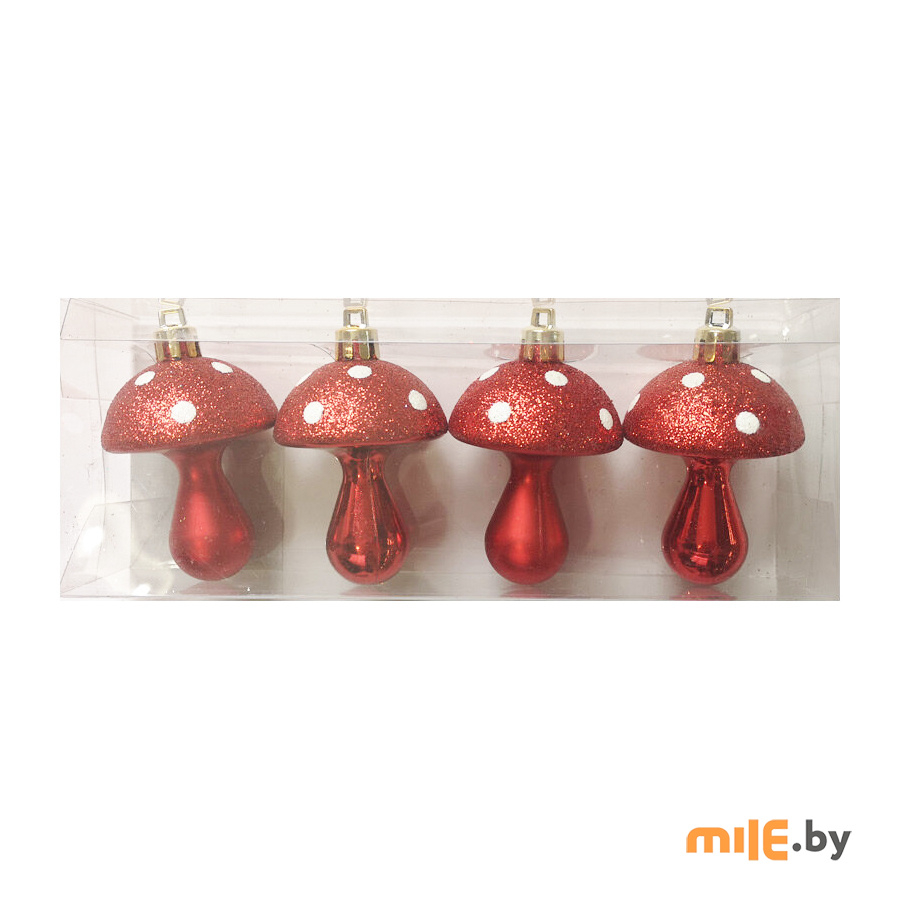 Набор елочных украшений Волшебная страна Грибочки 4 шт (красный)