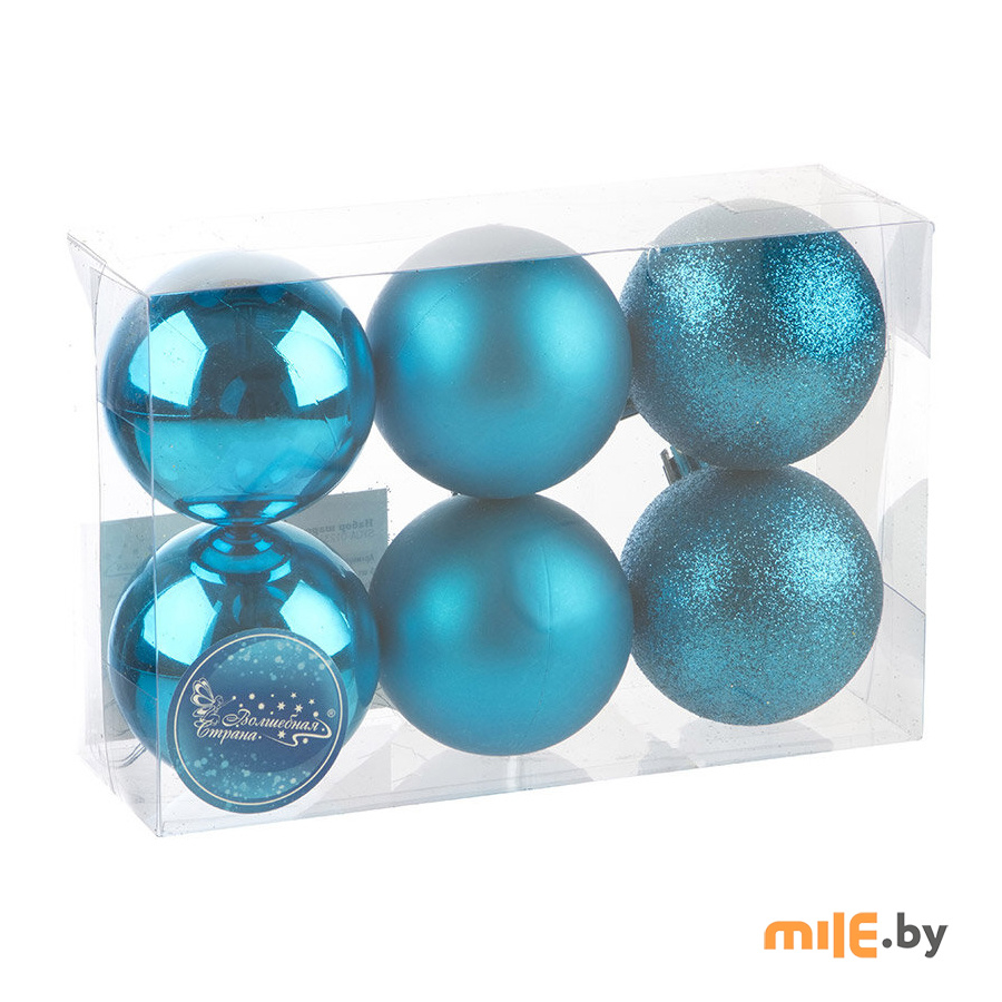 Набор из 6 ёлочных шаров из пластика. Диаметр шаров 6 см. В наборе 2 блестящих шара, 2 матовых шара, 2 шара с посыпкой.