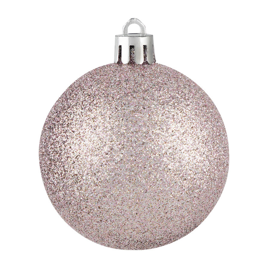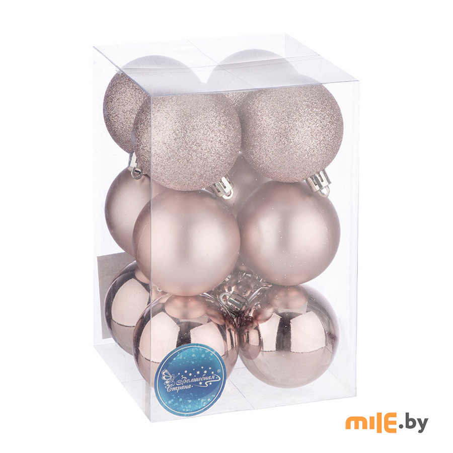 Набор из 12 ёлочных шаров из пластика. Диаметр шаров 6 см. В наборе 4 блестящих шара, 4 матовых шара, 4 шара с посыпкой.