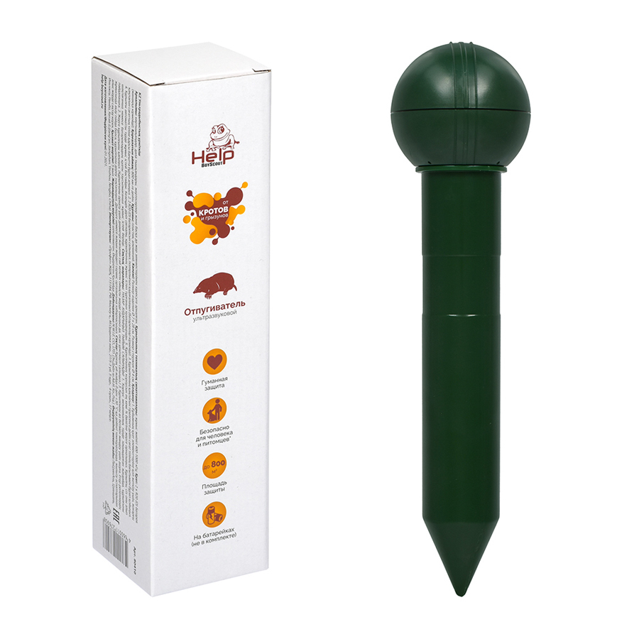 Ультразвуковой отпугиватель кротов - современное средство защиты садово-дачного участка от земляных вредителей. Отпугиватель создает звуковые сигналы, которые доставляют дискомфорт кротам и заставляют их покинуть участок. Радиус действия до 800 кв. м. Элемент питания 2 батарейки R20(D) (в комплект не входят). Звук безопасен для человека и домашних животных, растений и насекомых, присутствие которых в почве необходимо для садовых цветов и овощей.