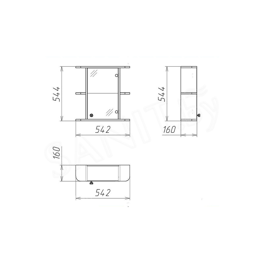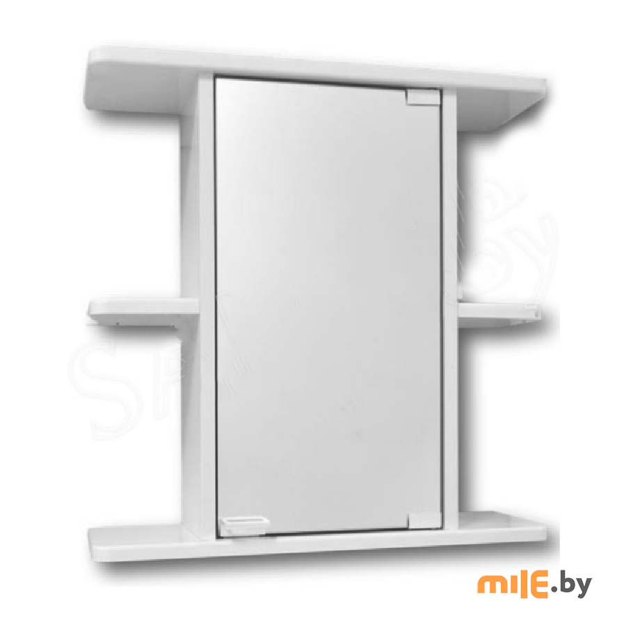 Практичный настенный зеркальный шкаф с распашной дверцей и вместительными открытыми полочками, которые обеспечивают дополнительные места хранения. Корпус выполнен из ламинированного ДСП с облицовкой кромкой ПВХ.
